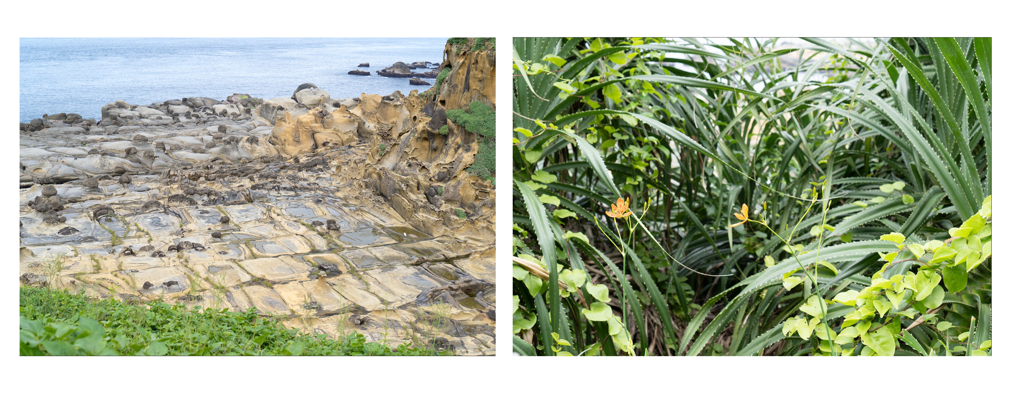 她的創作靈感也由此展開,此次展覽的標題取自於她遊走於台灣路上感受到的心動風景——「黑冠」和「水坑」。這兩者的共同點都是由當地的自然環境孕育而成,存在著漫長歲月。海浪、風化與地形,在這2500萬年的漫長歲月間,交織出什麼樣的影色?黑冠麻鷺茶褐色的身軀、黑色的冠羽,邊走邊用大眼睛觀察周遭,這些自古以來棲息在台灣的鳥兒,究竟在看著怎樣的風景呢?