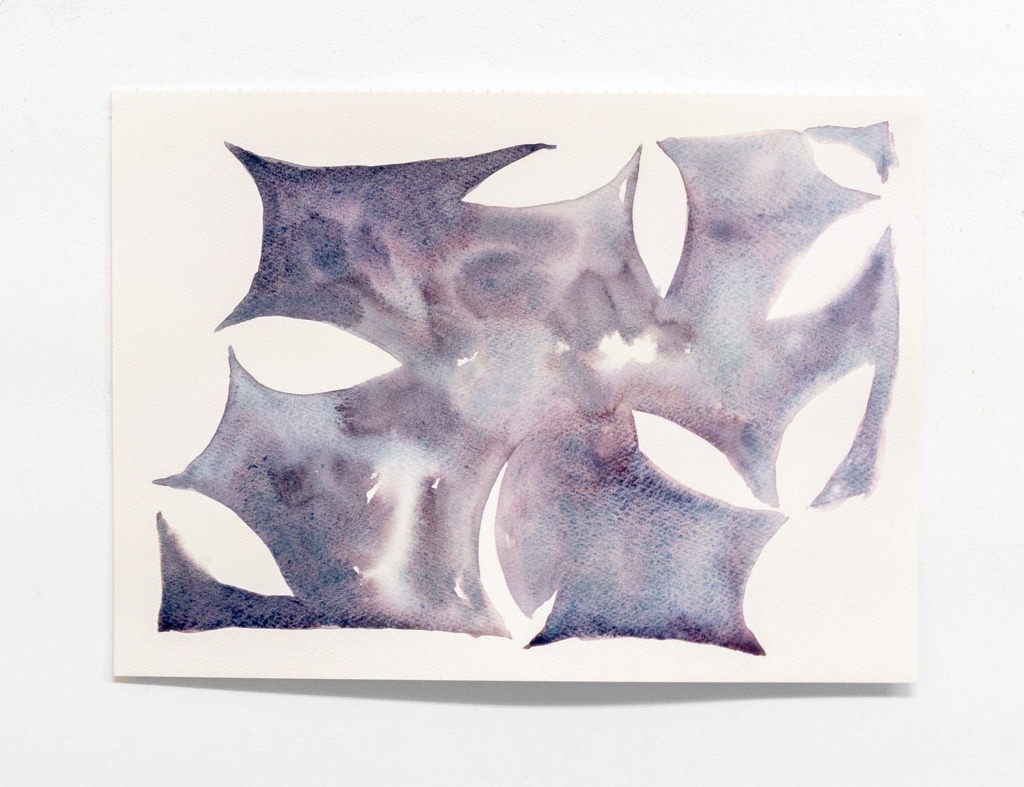 過往展覽〈青の遊泳 / 游玩海中〉重現她看到的三重縣鳥羽市的觀察,靠海漁村中,住著與自然共生的海女,透過海女們的話語,理解她們的生活,了解海女生存的所在,並開啟海面下的想像世界。又或是〈渦としかく/漩渦與方塊〉呈現其發現,在廢棄建築與蝸牛的共生關係,並用螺旋狀與方形的交流,重譯自己在一大片風景中的感受。〈ぐぜり/呀呀鳥語〉以不同的畫作呈現鳥語的節奏、出現的所在,對她而言,「聲音」也是構成這片土地環境和風景的重要元素之一,此外,在創作中,聲音的意象往往會反映在她構圖的節奏或色彩上。