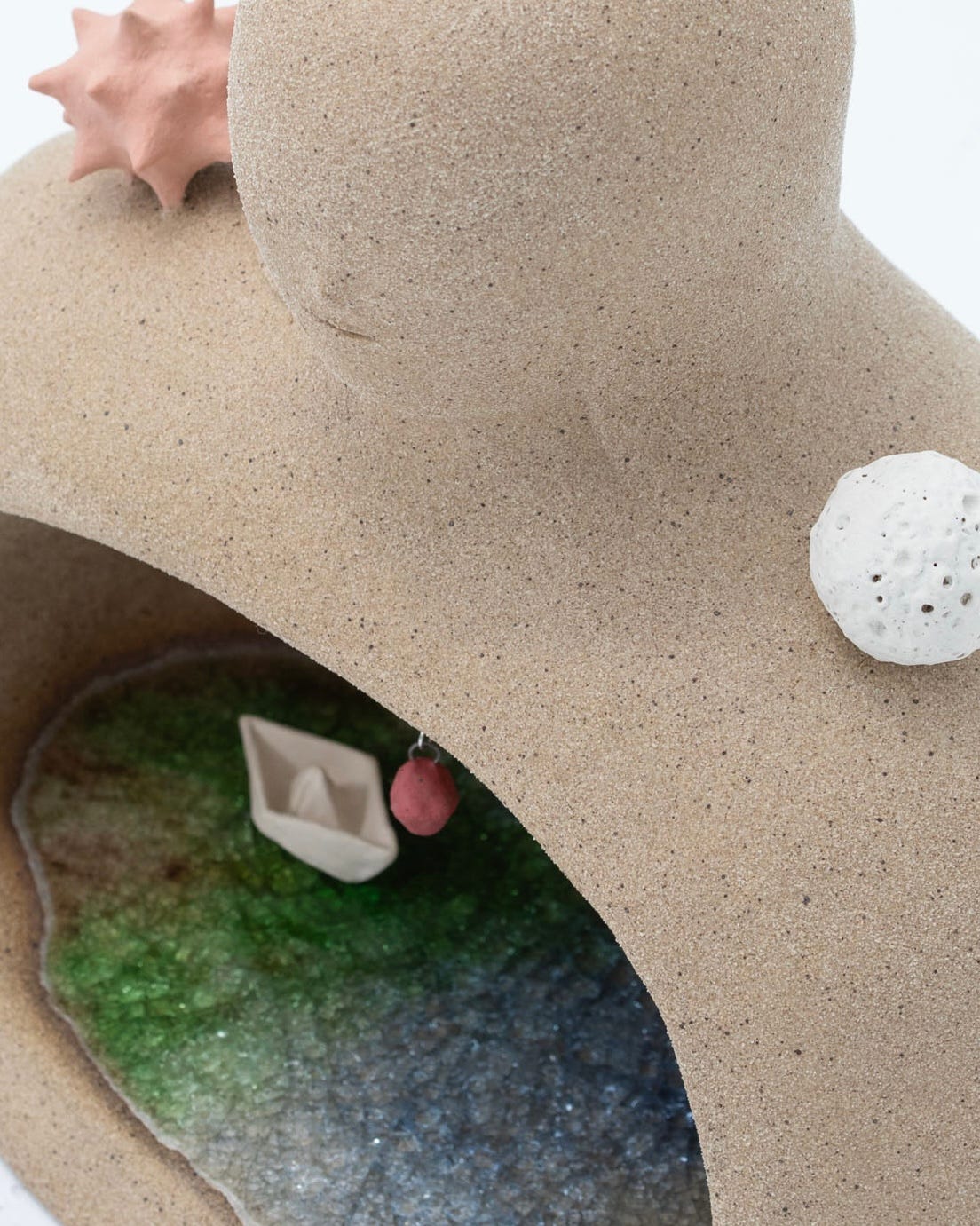 Born in 1995, Taipei, Susu graduated from the Department of Fine Arts at Taipei National University of the Arts. In 2019, she founded her ceramics brand “Susu Ceramics” and opened the “Susu Ceramics Studio” in 2021, focusing on personal projects and ceramic teaching. Her works often begin with the female body, blending ceramics and painting. She weaves through the boundaries of myth, dream, and everyday life to craft intimate landscapes rich with symbolism and poetic resonance.