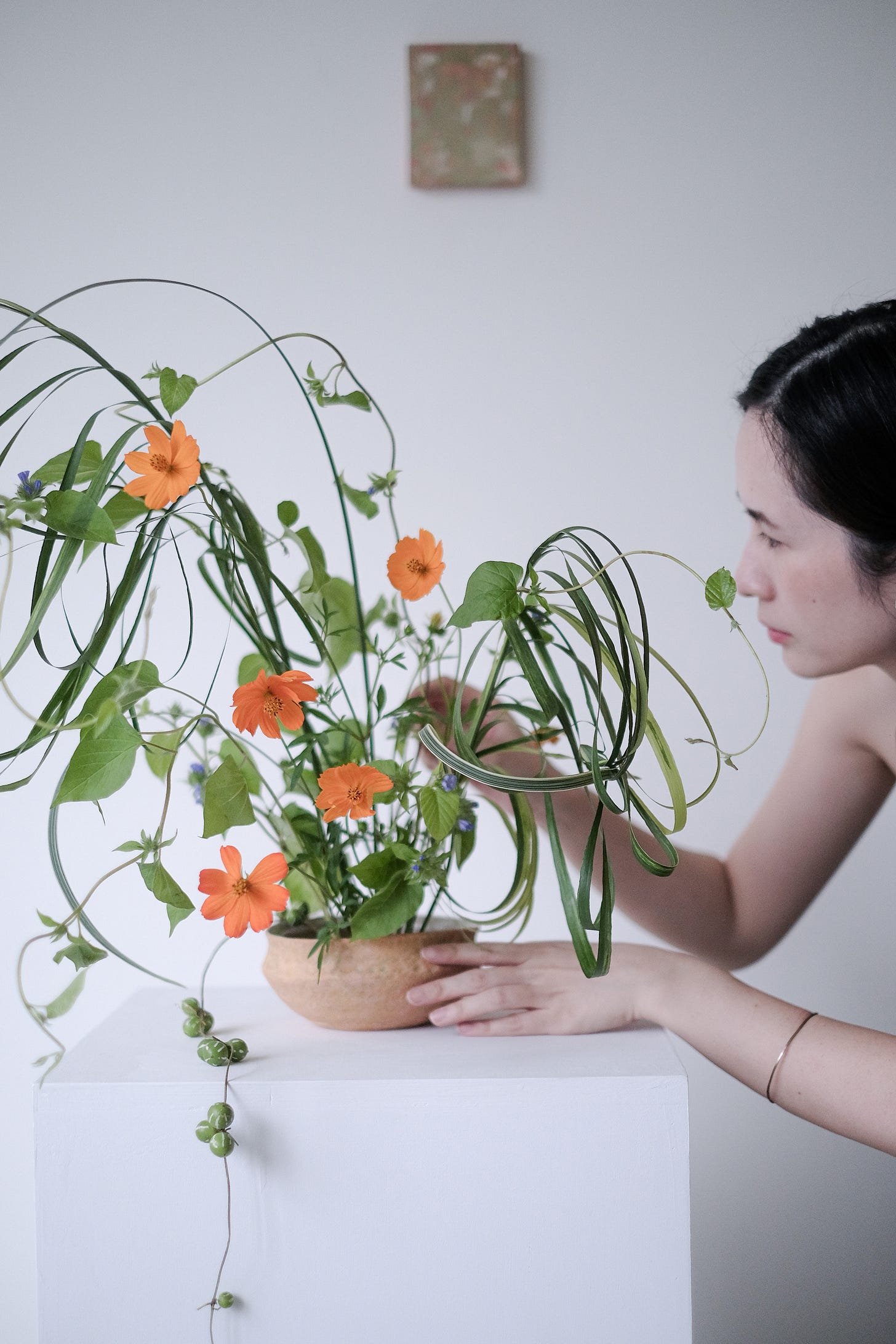 在〈Echoes of a Fold 摺色 ﹏ ⚘. 右耳陶展 〉展出期間,藝術家賀羽薇將與花藝家 CIZ 共同合作一堂劍山花藝工作坊。